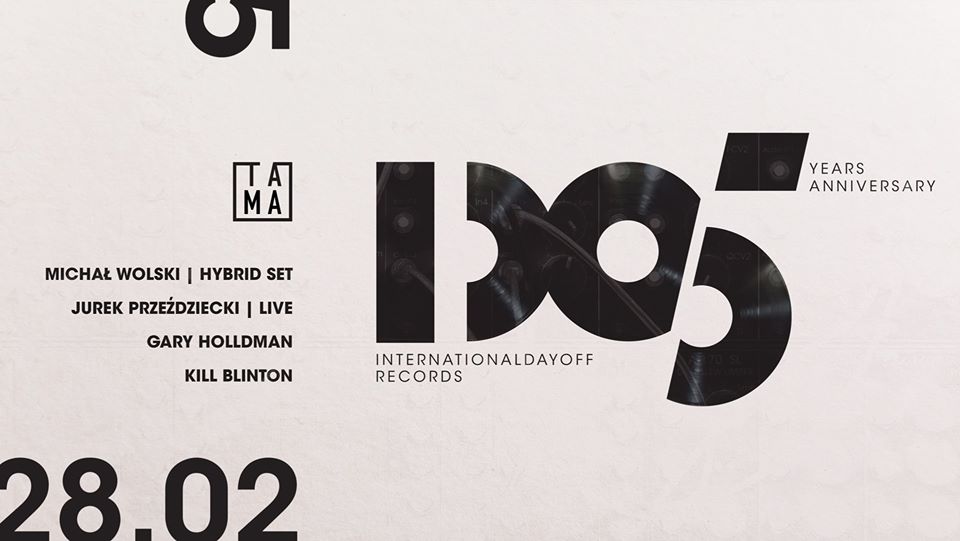 I tak minęło pięć lat… Czas na świętowanie! International Day Off zaprasza do klubu Tama w Poznaniu. Tam wystąpią Jurek Przezdziecki (który zagra live), Michał Wolski (w formule Hybrid) oraz założyciele wytwórni Gary Holldman i Kill Blinton.