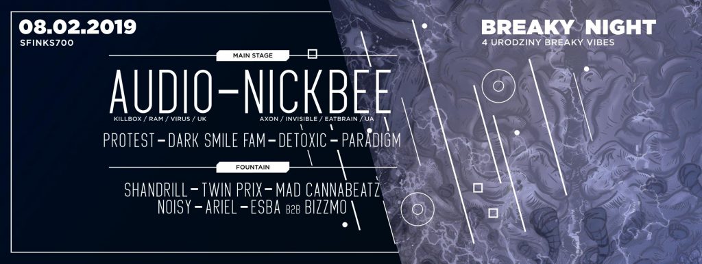 Audio obiecał zemstę, lecz nie będzie mścił się sam – NickBee, założyciel Axon Records, wraz z nim chwyci za dźwiękową oręż i z samego serca Sfinks700 przekażą potężną dawkę tego, czego trzeba Waszym uszom, nogom, sercom i duszom. Jest to pewnego rodzaju prezent również dla nas, gdyż na tej imprezie świętować będziemy hucznie nasze 4-te urodziny. Po raz pierwszy z DWOMA ZAGRANICZNYMI ARTYSTAMI!