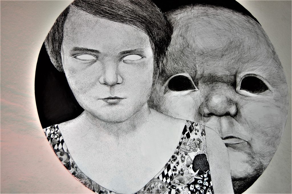 Pierwsze kroki do biura prasowego i już pierwszy znak zapytania w głowie. Czy nam się zdaje, czy na samym szczycie wieży stoi samobójca w stroju Batmana? Z dołu sytuacja była oczywista. Później okazało się, że na szczęście były to (odważne jak nie wiem co) działania artystyczne części „art”, na które można było natknąć się później na festiwalu. Nie dominowały. Nie narzucały się. Były gdzieś obok. I to było fajne, bo można było z tą sztuką obcować, żeby dopiero po chwili uświadomić sobie, że to przecież ta część „art”. W pewnym momencie grupa ludzi zaczęła „grać” wielką kulą, która jak nic było częścią performance’u. Czy ucieszyło to twórcę? Podejrzewam, że jednak trochę. W końcu nie było to muzeum, a np. twarze w chillout roomie (takie jak ta poniżej) przyciągały uwagę i znalazły się jako zdjęcia w niejednym telefonie. Wiem, bo godzinę siedzieliśmy tuż pod tym obrazem.
