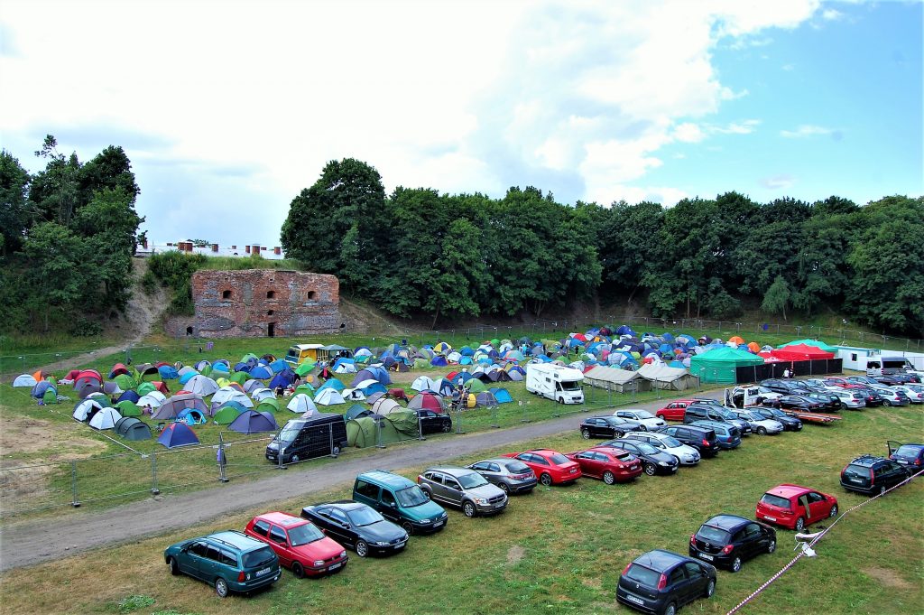 Dojeżdżamy bez problemu. Kilku stewardów mówi co, gdzie, jak. Zsuwamy się autem z piaszczystej górki robiąc przy okazji tyle kurzu co wytwornica dymu na secie Niny Kraviz. Jesteśmy ewidentnie w wielkim, fortecznym dole. Tam właśnie znajdował się jeden z parkingów i trawiaste pole namiotowe. Można było auto zostawić tuż przed wejściem, co dla wielu (w tym dla nas) jest dość kluczowe, kiedy samochód jest Twoją szafą, a w namiocie masz tylko śpiwór.