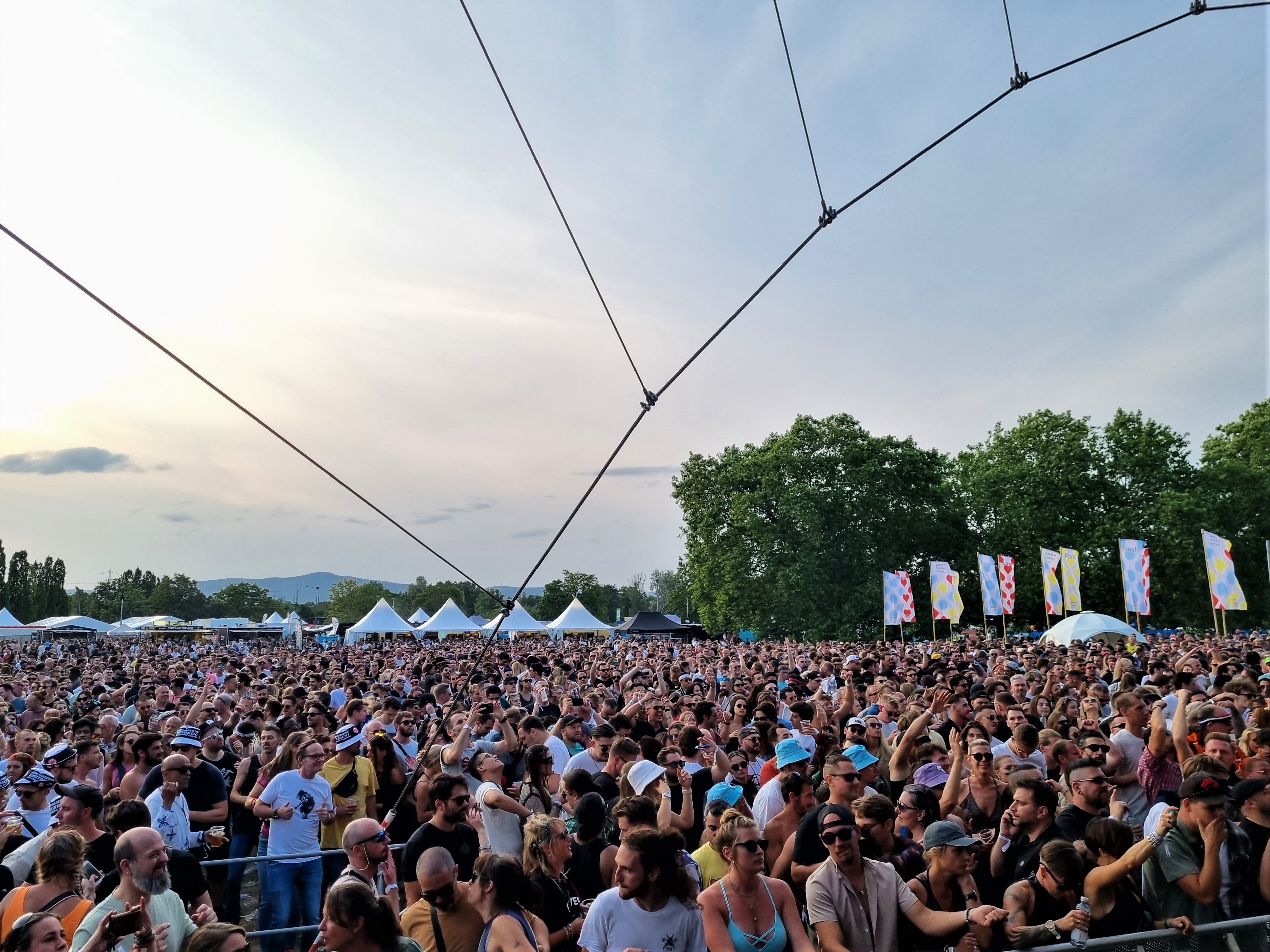 Miłe twarze i miłe osoby spotykamy też już na samym początku przygody z festiwalem. Jak gdyby ten rzeczownik „family” do czegoś zobowiązywał, jak gdyby z założenia obecność na tej imprezie wklejała uśmiechy na twarze. W sumie dlaczego ktoś miałby się smucić? Słońce chowało się często za chmurami, ale momentami też prażyło i co najważniejsze nie spadła ani jedna kropla deszczu, do tego cały czas panowała parna atmosfera sobotniego, lipcowego dnia w centrum Europy. Czy festiwal był tak olbrzymi jak lata temu? Wydaje nam się, że nie, ale dwie półkoliste sceny były wystarczającą areną dla wydarzeń tego dnia. Uwielbiamy eventy, które rozkręcają się koło południa i kończą w okolicach 22:00. Frankfurtczycy też chyba je uwielbiają, bo tego dnia były… trzy takie dzienne festiwale w różnych okolicach i z różną muzyką! LFP, Apokalypse i Find Your Animal.