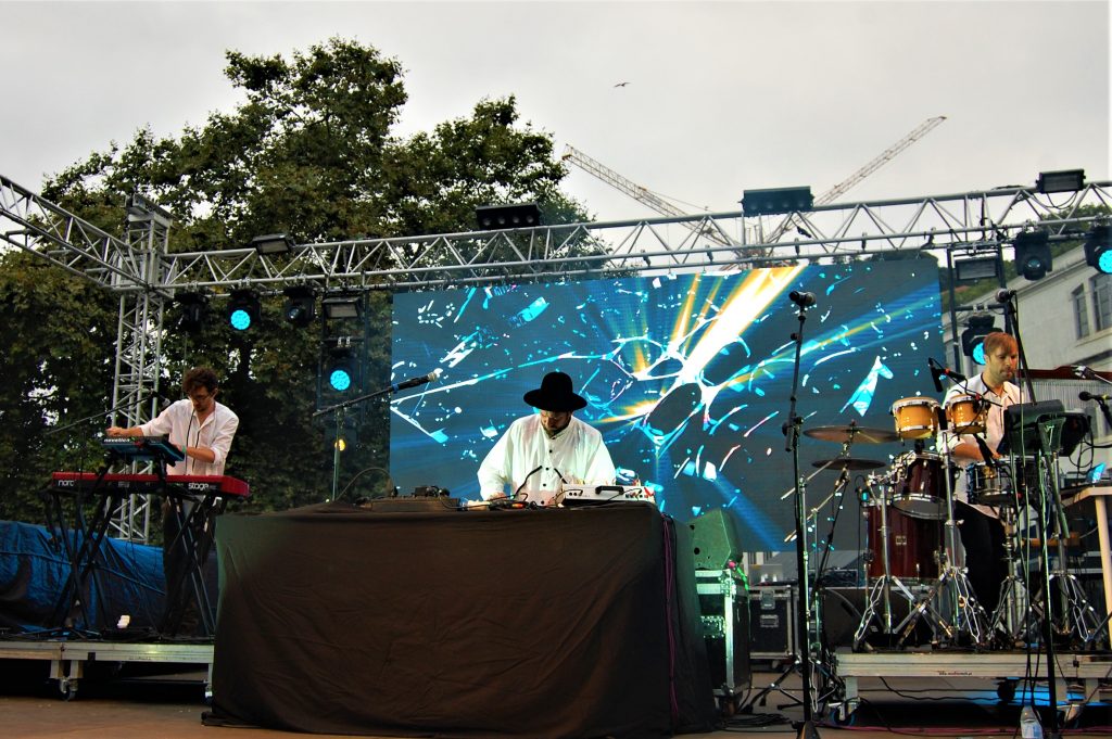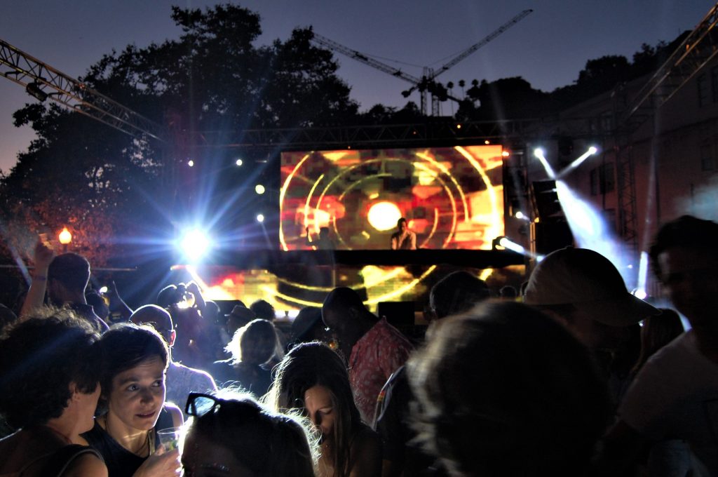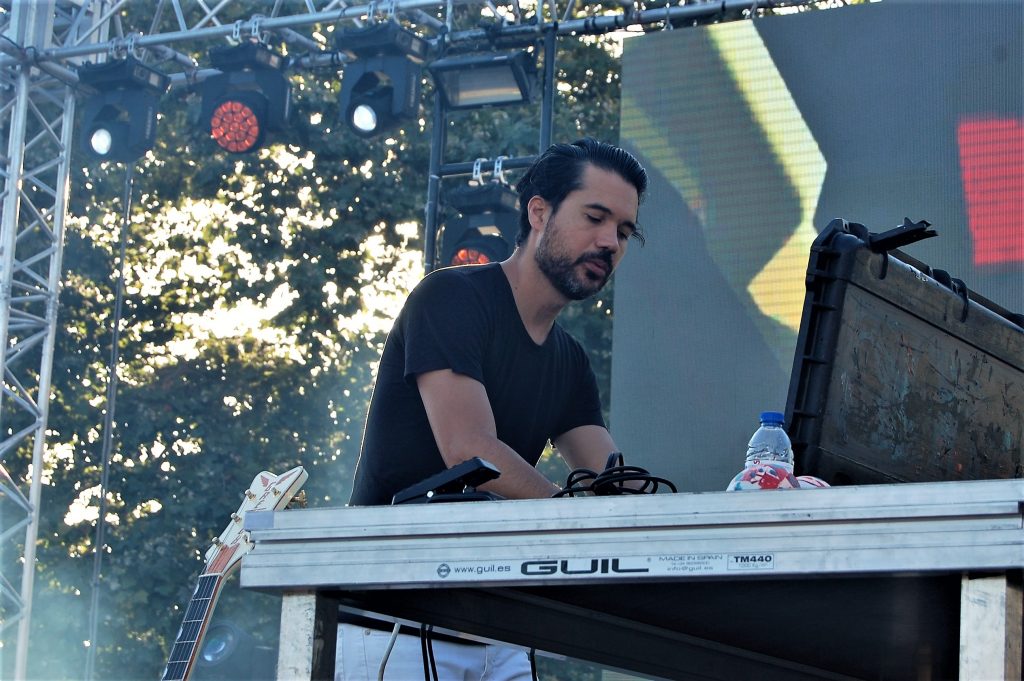 Samo centrum Alfandega to wielki, historyczny budynek tuż nad rzeką Douro. Z drugiej strony wody widać charakterystyczne kamienice na wzgórzach i kilka winnic. Główną scenę festiwalu zlokalizowano na powietrzu, tuż nad wodą, na niewielkim, ale wciśniętym między zabudowę, a jedną z głównych ulic placu. W zasadzie spacerując po mieście można było słuchać muzyki i widzieć artystów, co wielu mieszkańców robiło przez cały weekend. Impreza w sobotę rozkręcała się powoli, o muzyczne ambicje dbał w sobotę Matthew Dear, który zaserwował live’a, zaczął śpiewać i grać na gitarze. Trochę melancholijnie, trochę lirycznie, wiecie, rzeka, ciepło, ale… co tam dużo mówić dynamizmu to nie dodało, osobiście wolę Deara po prostu jak gra sety.