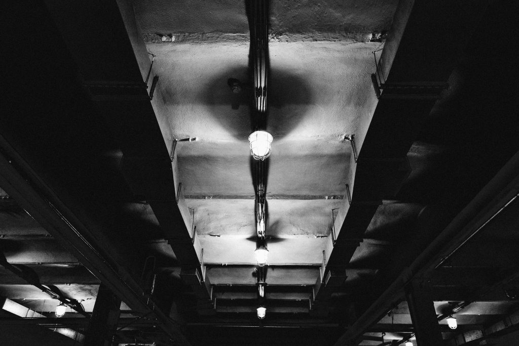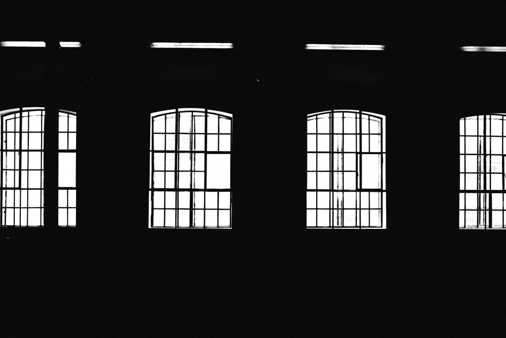 Cztery sceny w industrialnym miejscu.