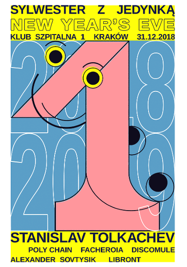 Kontynuując tradycję wywodzącą się z lat 90-tych Szpitalna 1 zaprasza na Sylwestra z Jedynką. Gościem przełomu lat będzie Stanislav Tolkachev, reprezentant ukraińskiej sceny techno, którego sety przepełnia mocna głębia, a na jego produkcje wpływa zarówno klasyczne brzmienie Detroit, jak i eleganckie, minimalistyczne tendencje zrodzone w Berlinie.